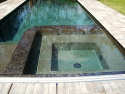 The tile, coping, interior finish and decking surface will make a huge difference in the look of your pool and your yard. Here are some examples to choose from. We have many more samples in our office, if you'd rather check these out in person.